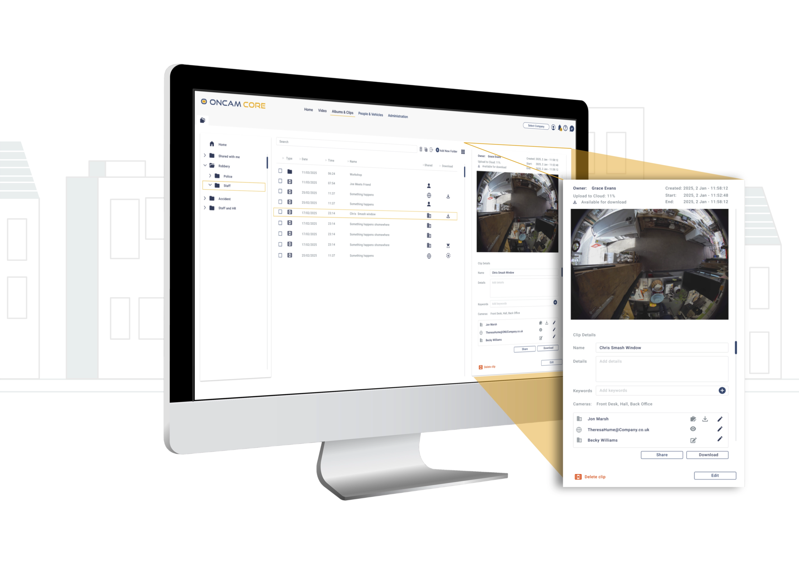 Clip Management enables secure capture, organization, sharing, and export of video evidence across single or multiple surveillance locations.